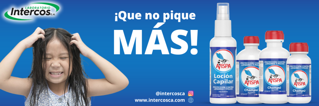 Avispa Loción Capilar se posiciona como el aliado definitivo en la lucha contra los piojos y liendres. Laboratorio Intercos, C.A. reafirma su compromiso con la calidad y la prevención, y por eso, nos encargamos de que puedas encontrar la AVISPA Loción Capilar a nivel nacional. Puedes pedir el tuyo en la tienda online de nuestra página web, en nuestra tienda oficial de MercadoLibre, o comunicarte con nuestro departamento de ventas. Recuerda que puedes seguir nuestro perfil de Instagram @intercosca para enterarte de todas nuestras novedades. No olvide que ¡Si es AVISPA, es mejor!